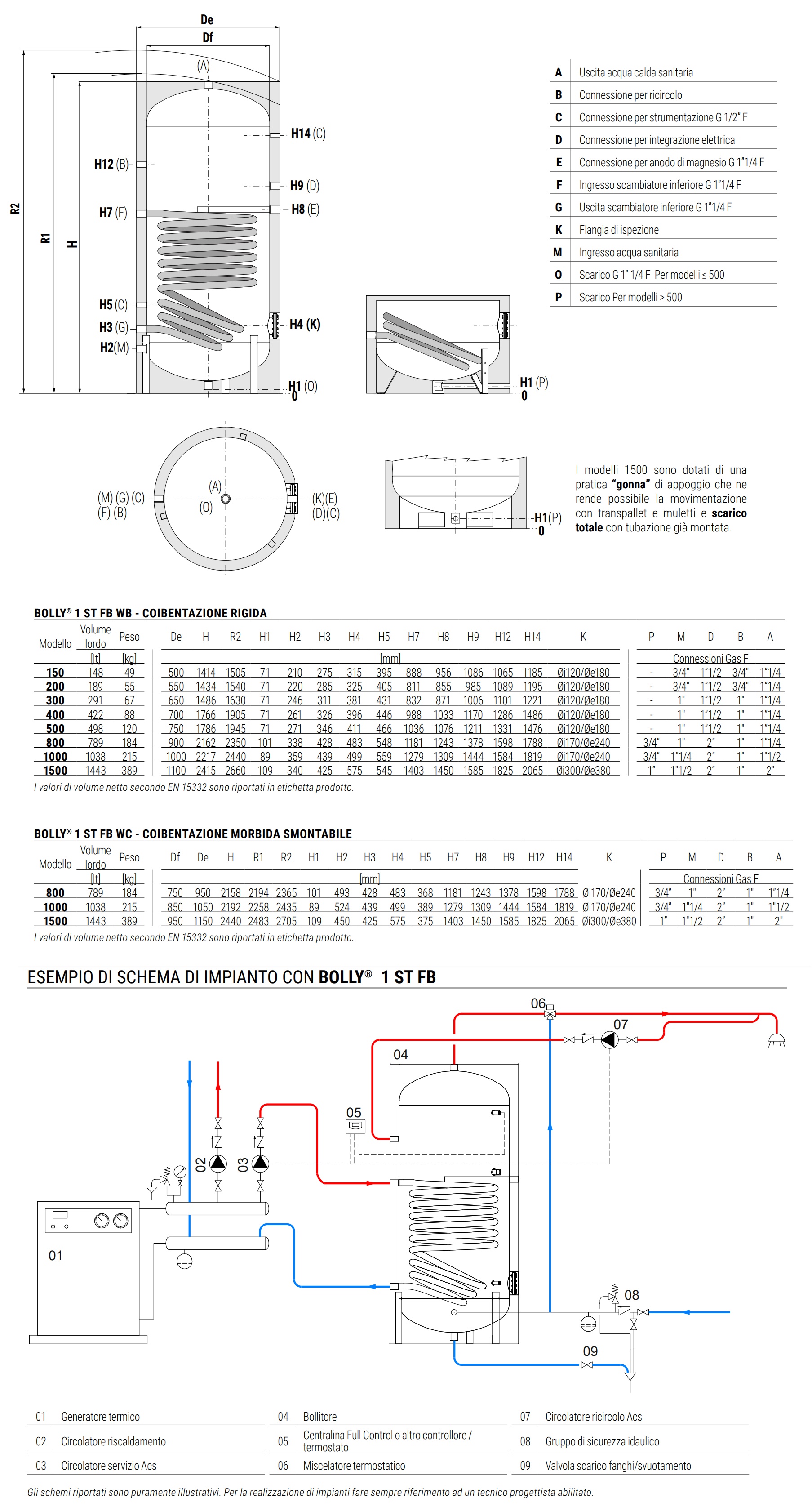 Cordivari Bollitore Bolly 1 ST FB WC 1500 Litri Accumulo ACS 1 Scambiatore Classe Energetica C Coibentazione morbida