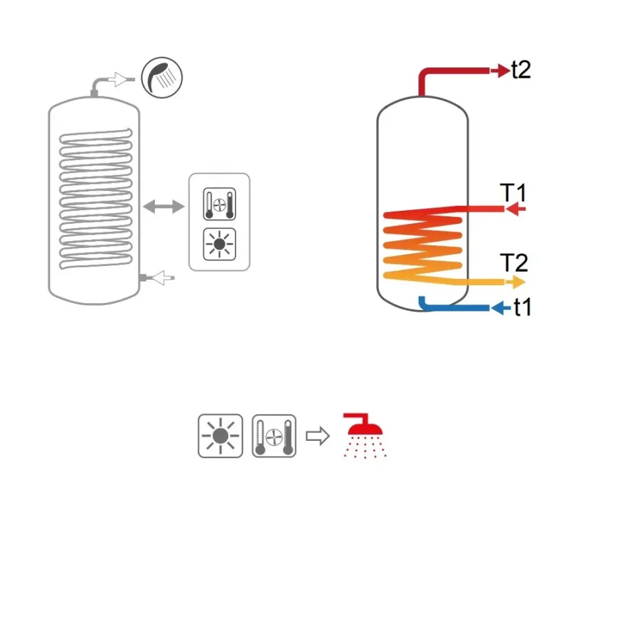 - Produzione ed accumulo di acqua calda sanitaria (ACS). Tutti i collegamenti idraulici sul retro, le connessioni frontali e la flangia sono allineati per uninstallazione semplice e veloce.