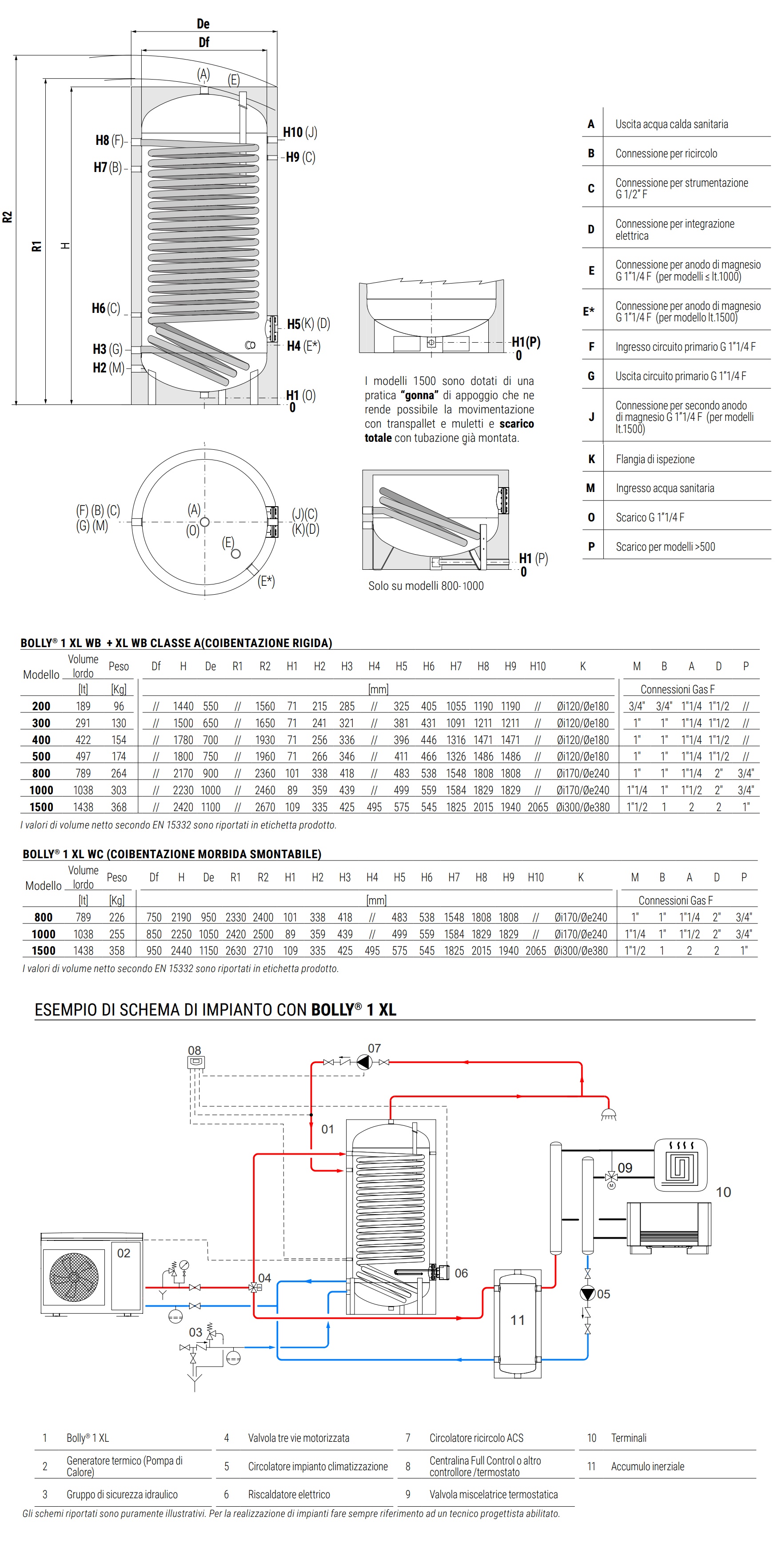 Cordivari Bollitore Bolly 1 XL WC 1500 Litri Accumulo ACS 1 Scambiatore Classe Energetica C Coibentazione morbida