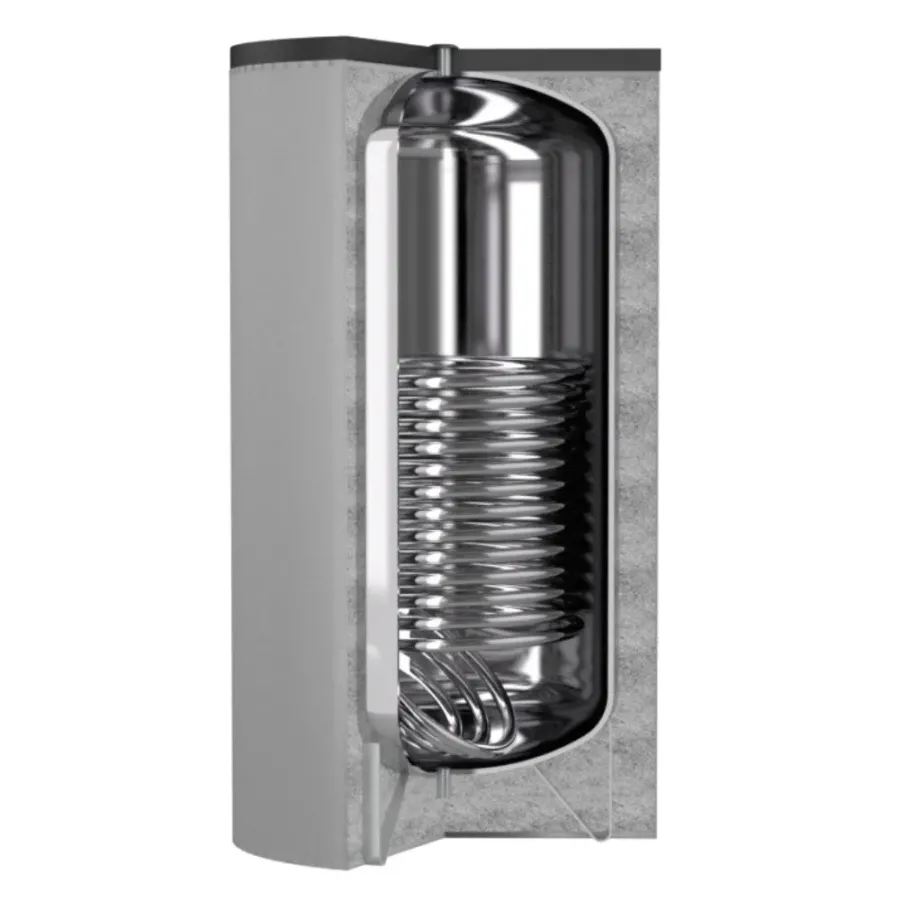 Bollitore in acciaio inox 316L con 1 scambiatore fisso in acciaio inox 316L di grande superficie per produzione di A.C.S. per pompe di calore
