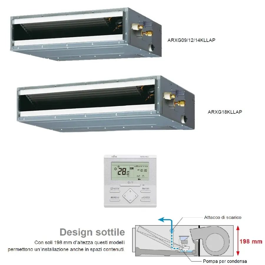 Unità interna canalizzata ARXG09KLLAP 9.000 BTU 2.6 kW Serie KL Compatta Bassa Prevalenza