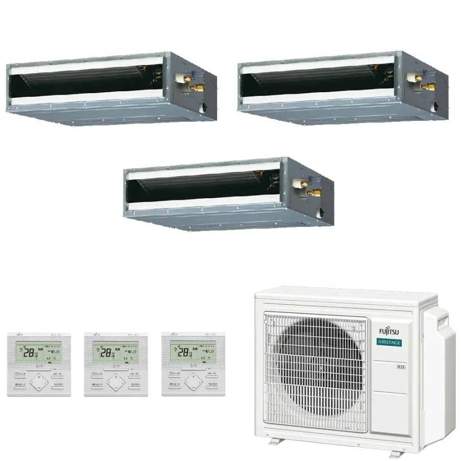 Climatizzatore Fujitsu Trial Split Serie Canalizzato KL WiFi Opzionale 7000+9000+12000 Btu riscaldamento con pompa di calore con tecnologia inverter a basso consumo energetico