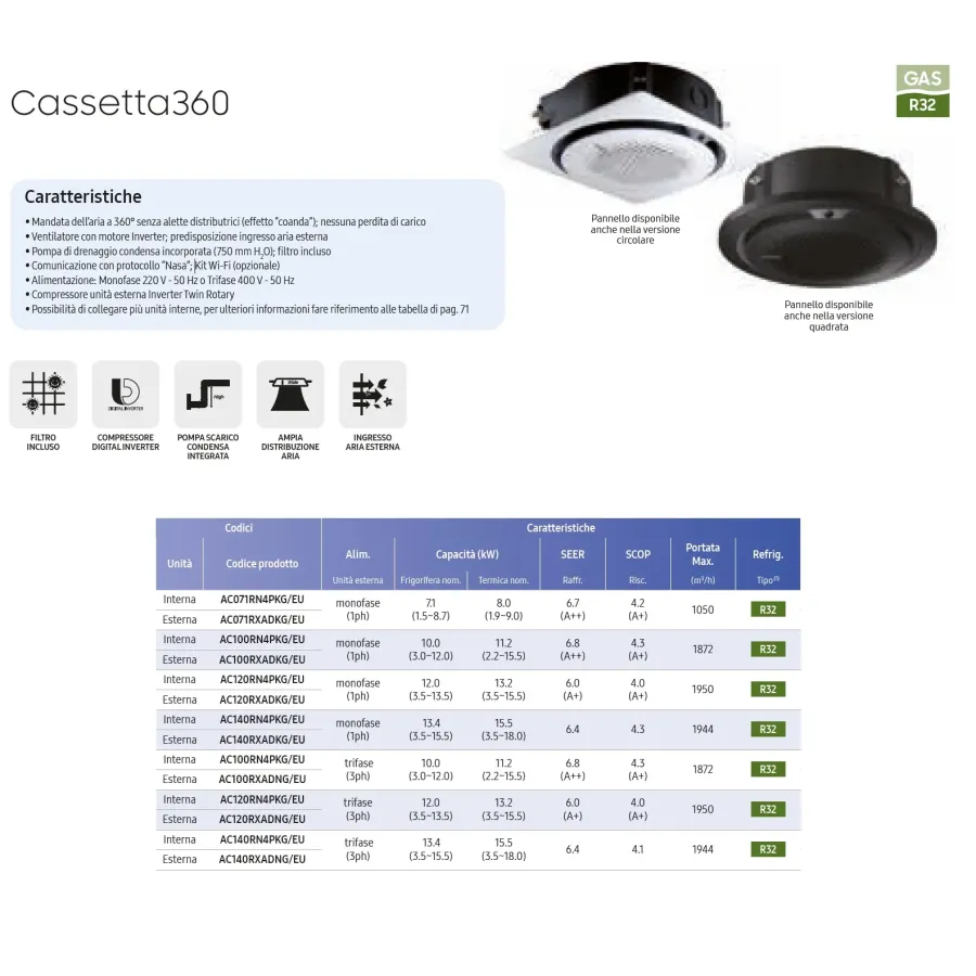 Unità interna Cassetta 360 AC120RN4PKG/EU 40.700 BTU 12.0 kW
