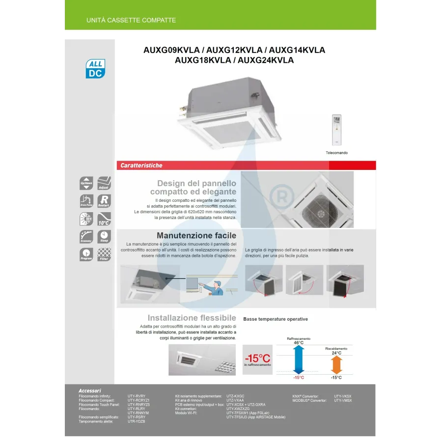 Unità interna cassetta AUXG12KVLA 12.000 BTU 3.5 kW Serie KV compatte