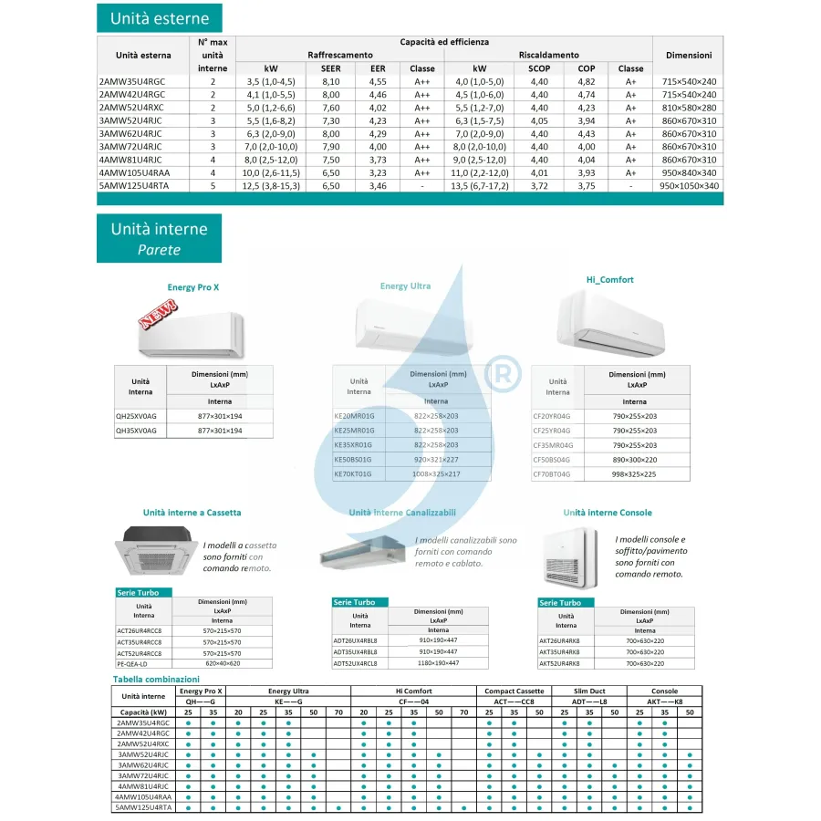 Ideale per ambienti uno split fino ai 27 mq + uno split fino ai 27 mq + uno split fino ai 54 mq + uno split fino ai 54 mq