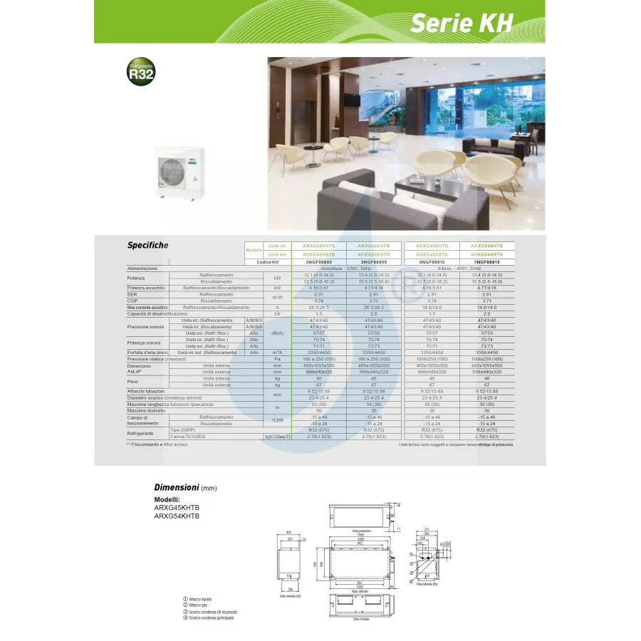 Fujitsu Mono Split Canalizzabile 54000 Btu ARXG54KHTB AOEG54KBTB Condizionatore Serie KH alta prevalenza R-32 Monofase 220v