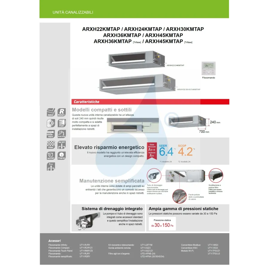 Fujitsu Mono Split Canalizzabile 36000 Btu ARXH36KMTAP AOEG36KQTA Condizionatore Serie ECO KMTAP R-32 Trifase 380v