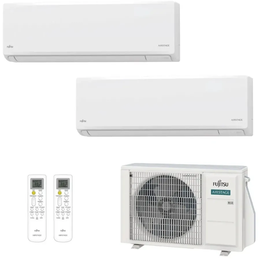 Climatizzatore Fujitsu Dual Split Serie KN WiFi 9000+12000 Btu riscaldamento con pompa di calore con tecnologia inverter a basso consumo energetico