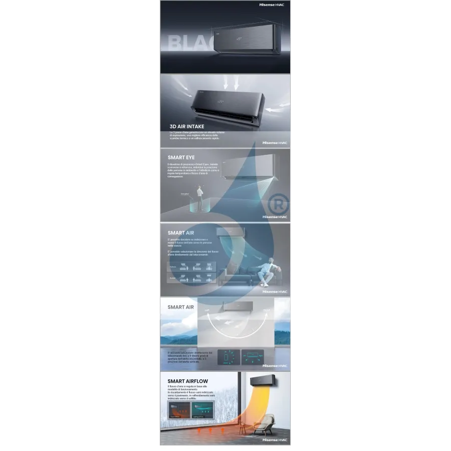 - I climatizzatori Inverter Hisense racchiudono tecnologie avanzate per garantire efficienza, risparmio energetico, silenziosità e comfort.