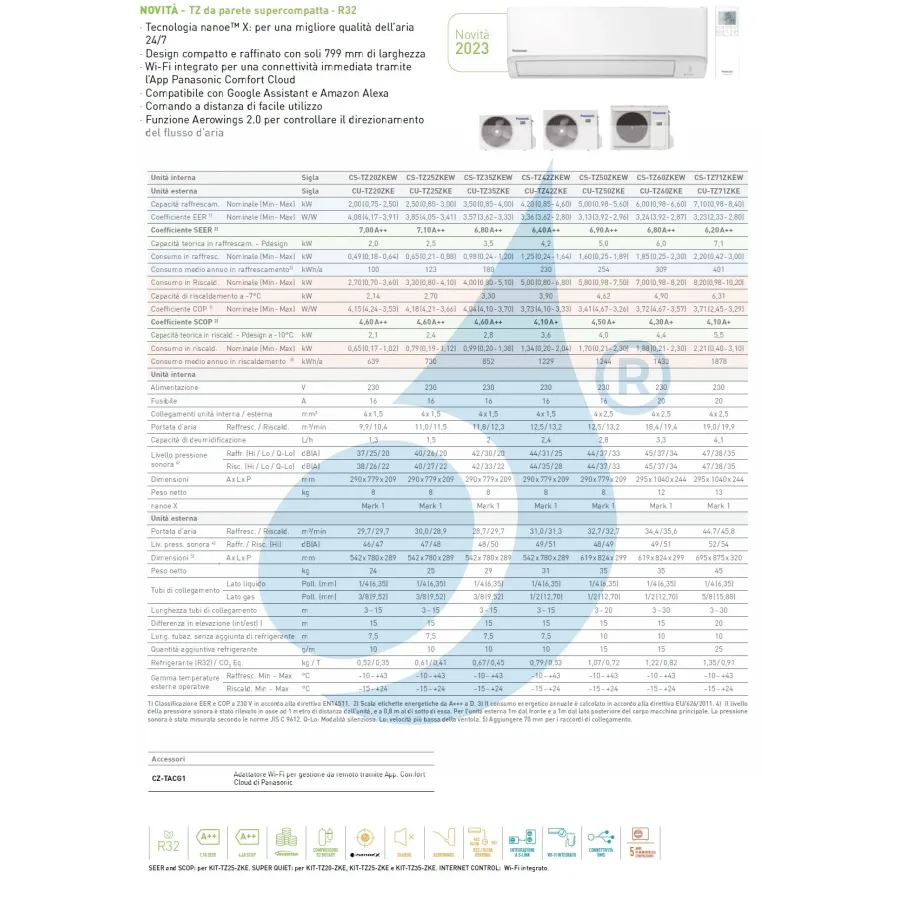 - Silenzio! Solo 20 dB(A) (TZ20, TZ25, TZ35) TZ Compatta WiFi Unità interne compatte di piccole dimensioni, inverter in pompa di calore ad alta efficienza, eccellente climatizzazione a bassa rumorosità, caldo freddo affidabile con deumidificatore. classe energetica A++ A+