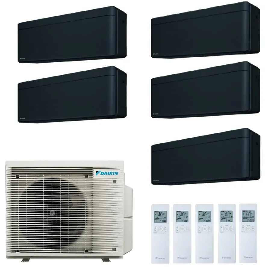 Condizionatore Daikin Penta Split serie Stylish Total Black WiFi 9+9+9+9+12 Btu riscaldamento con pompa di calore a basso assorbimento di corrente in classe energetica elevata funzione deumidificatore, purificazione dell'aria con eliminazione virus e batteri
