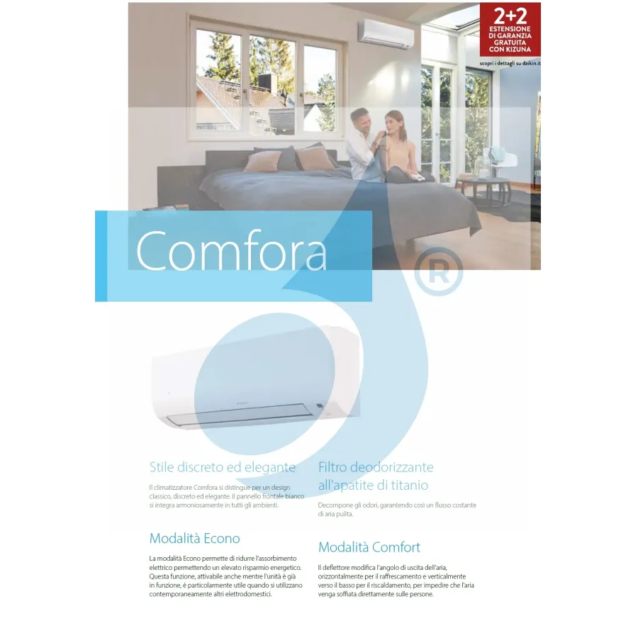 Condizionatore Daikin Quadri Split serie Comfora FTXP WiFi 9000+12000+12000+12000 Btu riscaldamento con pompa di calore a basso assorbimento di corrente in classe energetica elevata silenzioso e affidabile, Filtro deodorizzante all'apatite di titanio, senza purificatore Flash Streamer