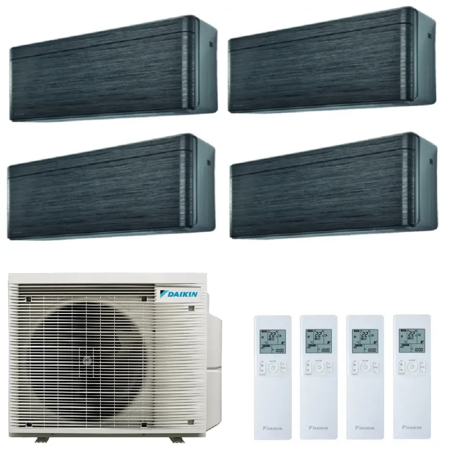 Condizionatore Daikin Quadri Split serie Stylish Blackwood WiFi 7000+9000+12000+12000 Btu riscaldamento con pompa di calore a basso assorbimento di corrente in classe energetica elevata funzione deumidificatore, purificazione dell'aria con eliminazione virus e batteri