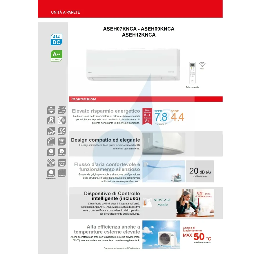 Unità interna Parete ASEH09KNCA 9.000 BTU 2.5 kW Serie KN