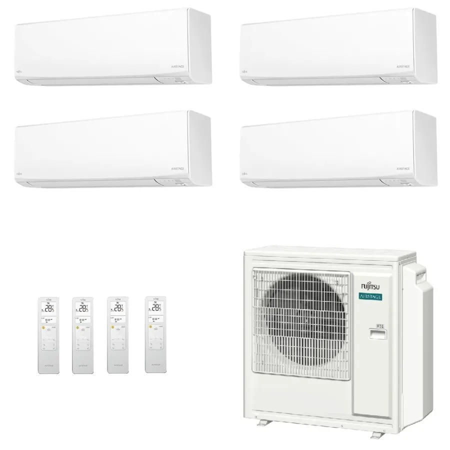 Climatizzatore Fujitsu Quadri Split Serie KJ-W WiFi 9000+9000+12000+15000 Btu riscaldamento con pompa di calore con tecnologia inverter a basso consumo energetico