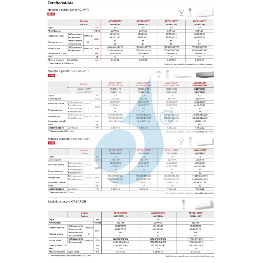 Unita' interna Parete ASYG12KETF 12.000 BTU 3.5 kW Serie KE Bianco