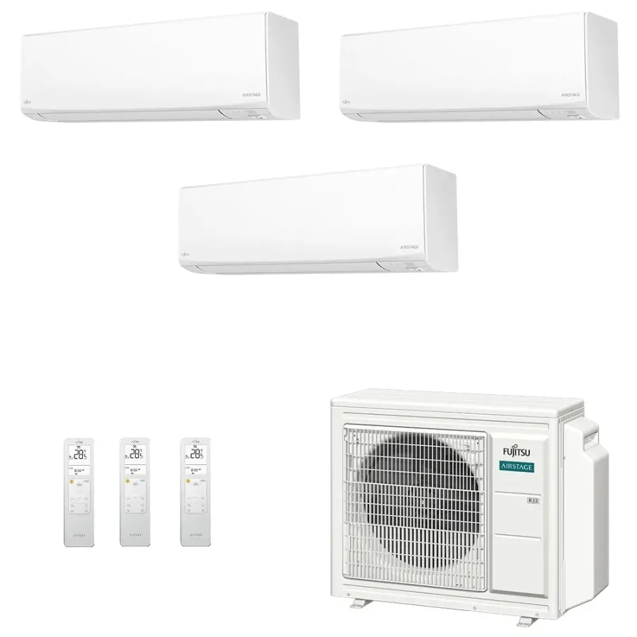Climatizzatore Fujitsu Trial Split Serie KJ-W WiFi 7000+15000+15000 Btu riscaldamento con pompa di calore con tecnologia inverter a basso consumo energetico