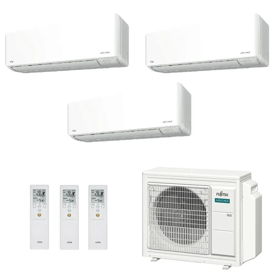 Climatizzatore Fujitsu Trial Split Serie KMCG WiFi 9000+12000+15000 Btu riscaldamento con pompa di calore con tecnologia inverter a basso consumo energetico
