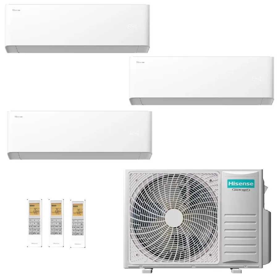 Climatizzatore Hisense Trial Split Serie UNI HB WiFi 9000+9000+12000 Btu riscaldamento con pompa di calore ad alta efficienza con bassi consumi energetici, deumidificatore