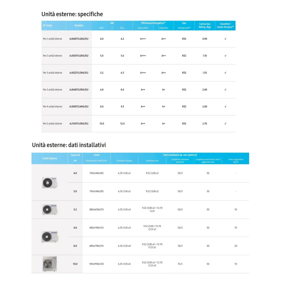 - Refrigerante R32: Il Gas R32, un tipo di refrigerante meno inquinante rispetto alle precedenti generazioni.