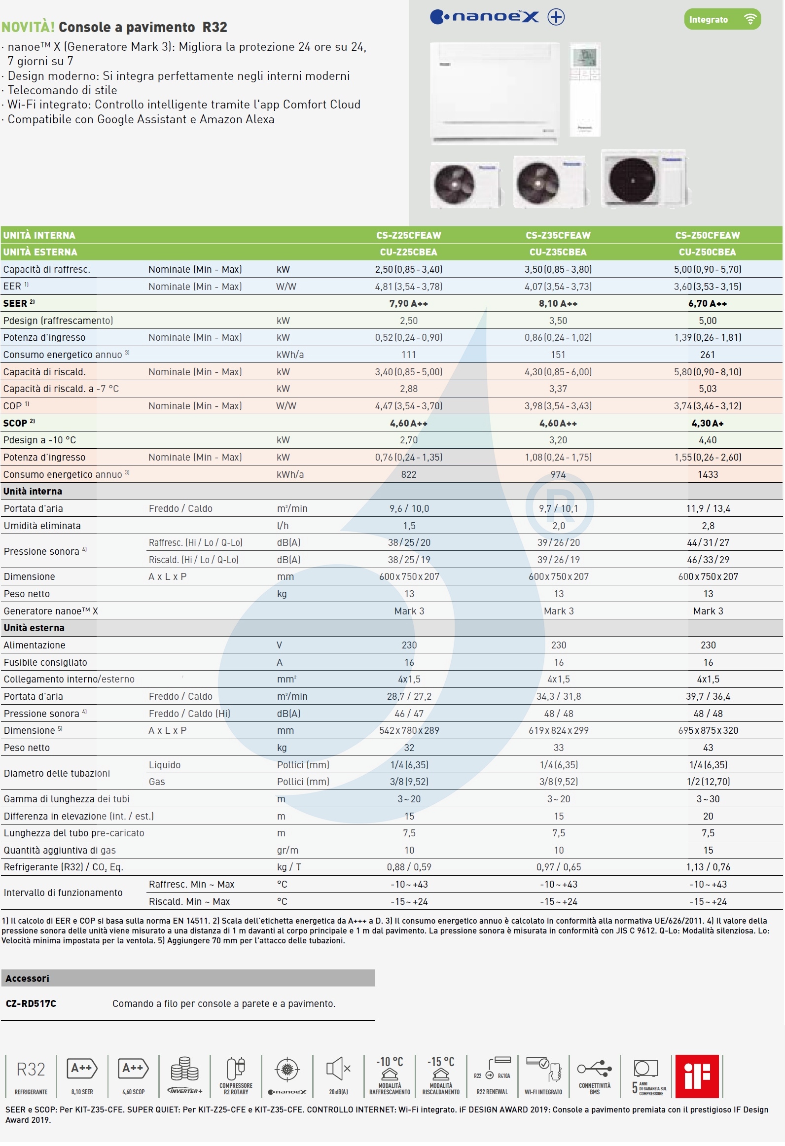 Consolle da pavimento con il nuovo sistema di depurazione dell'aria nanoe X: A ++ altamente efficiente, comfort (Tecnologia Supersilent solo 20 dB (A)) con aria fresca e salubre in combinazione con il design più moderno.La doppia uscita dell'aria condizionata (verso l'alto per l'aria fredda e verso il basso per l'aria calda) migliora il comfort e rende più uniforme la temperatura ambiente.
