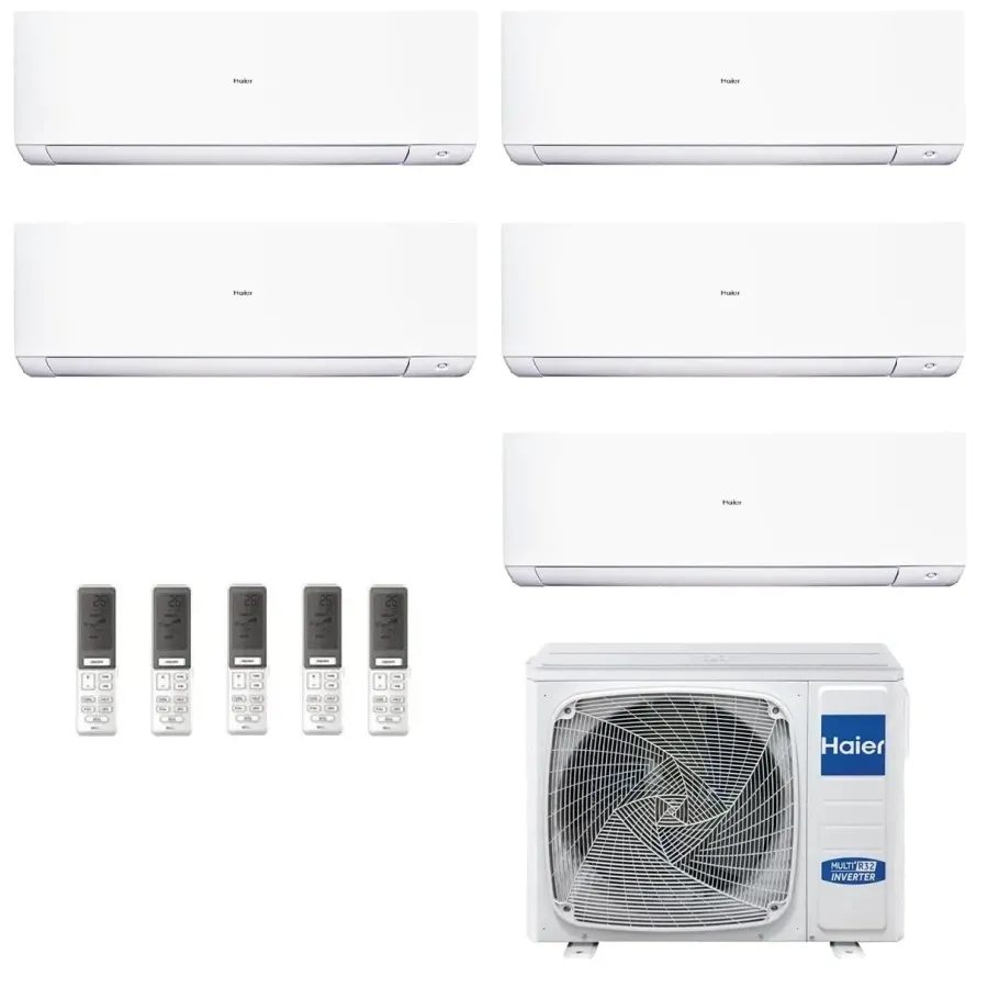 Climatizzatore Haier Penta Split Serie Expert WiFi 7000+7000+7000+7000+12000 Btu riscaldamento con pompa di calore ad alta efficienza con bassi consumi energetici, deumidificatore, Finitura Bianco Opaco, Telecomando di serie