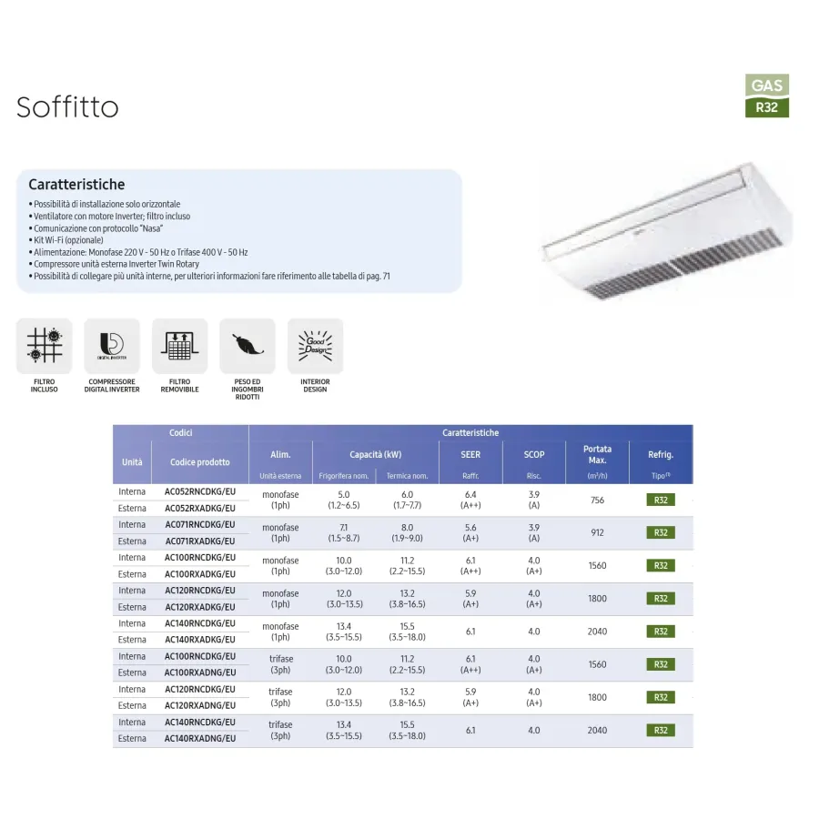 - Possibilità di installazione solo orizzontale- Ventilatore con motore Inverter; filtro incluso