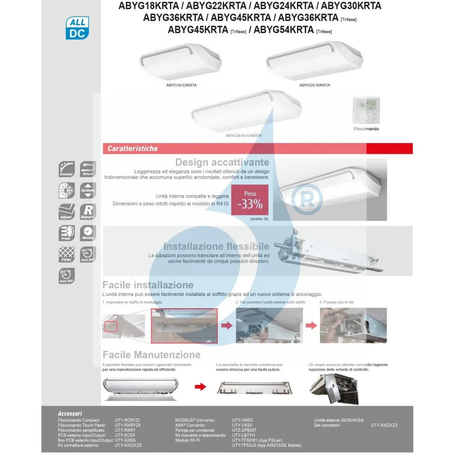 Unita' interna Soffitto ABYG18KRTA 18.000 BTU 5.0 kW Serie KR Soffitto