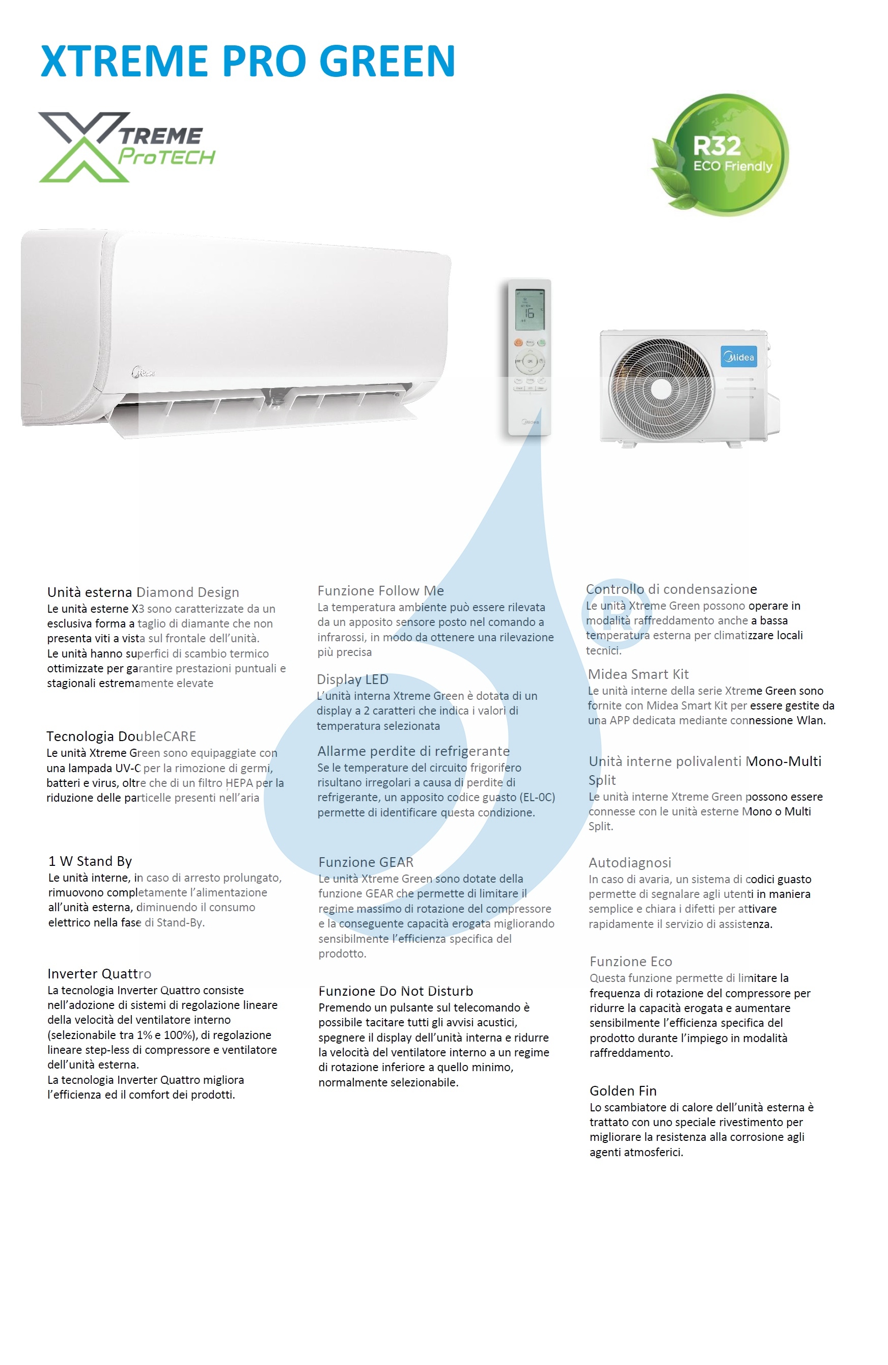 Climatizzatore Midea Trial Split Serie Xtreme Pro GREEN WiFi Xtreme Pro GREEN Btu conosciuto anche come serie Xtreme Pro Tech riscaldamento con pompa di calore ad alta efficienza con bassi consumi energetici, deumidificatore
