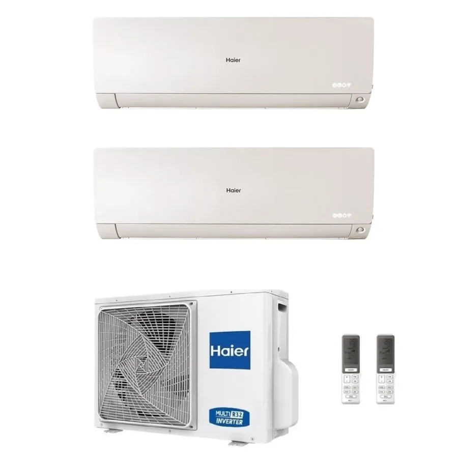 Climatizzatore Haier Dual Split Serie Flexis Plus WiFi 12000+18000 Btu riscaldamento con pompa di calore ad alta efficienza con bassi consumi energetici, deumidificatore, Finitura Bianco Opaco, Telecomando di serie