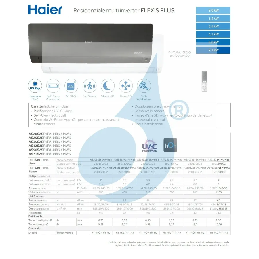 Unità Interna Haier AS35S2SF1FA-MW3 12.000 BTU 3.5 kW Serie Flexis Plus Bianco