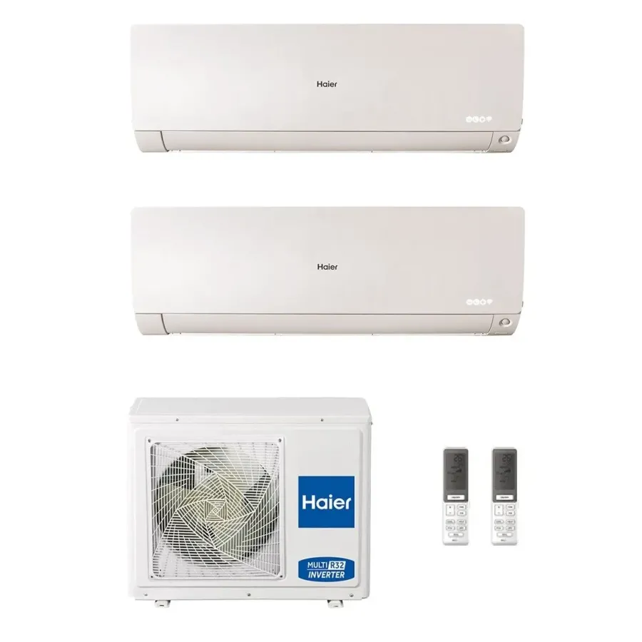 Climatizzatore Haier Dual Split Serie Flexis Plus WiFi 9000+18000 Btu riscaldamento con pompa di calore ad alta efficienza con bassi consumi energetici, deumidificatore, Finitura Bianco Opaco, Telecomando di serie