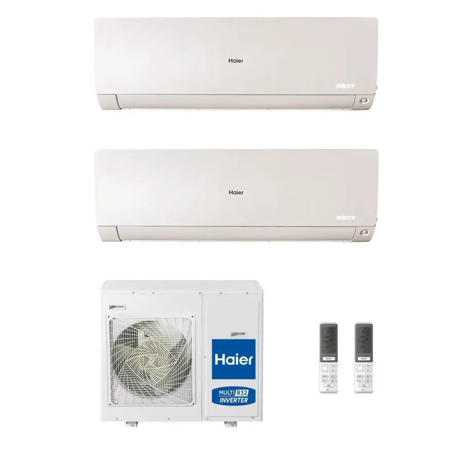 Climatizzatore Haier Dual Split Serie Flexis Plus WiFi 18000+18000 Btu riscaldamento con pompa di calore ad alta efficienza con bassi consumi energetici, deumidificatore, Finitura Bianco Opaco, Telecomando di serie
