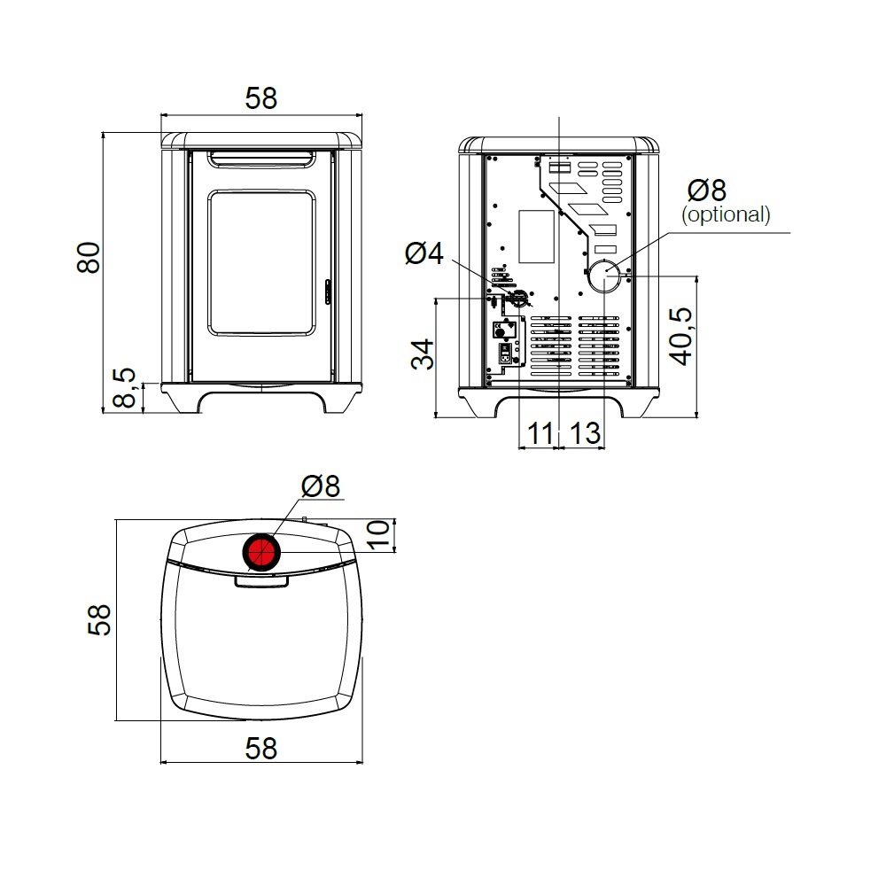 - Diametro tubo fumo: 8 cm