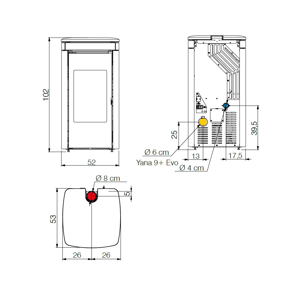 - Diametro tubo fumo: 8 cm