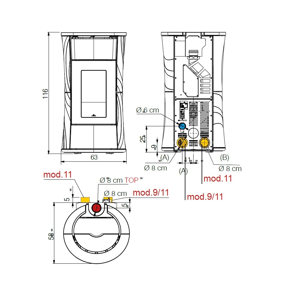 - Diametro tubo fumo: 8 cm
