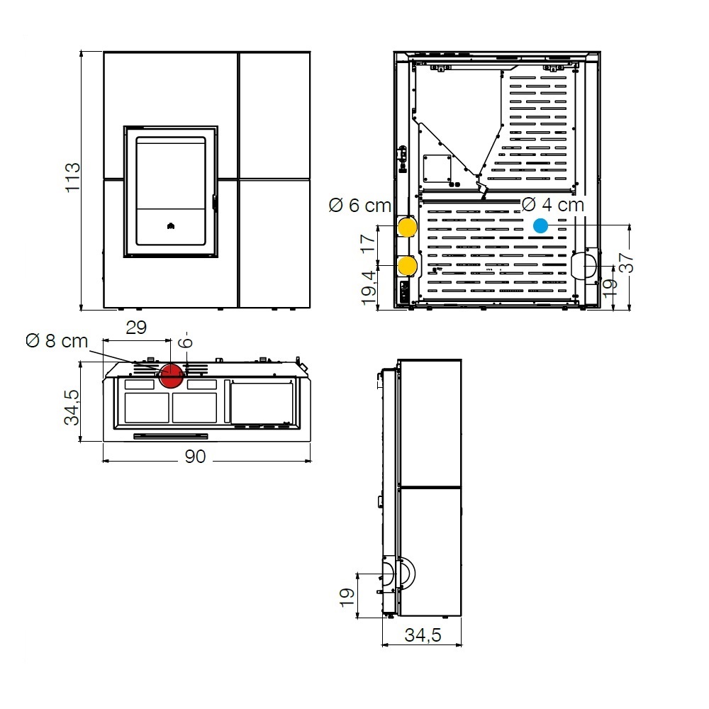 - Diametro tubo fumo: 8 cm