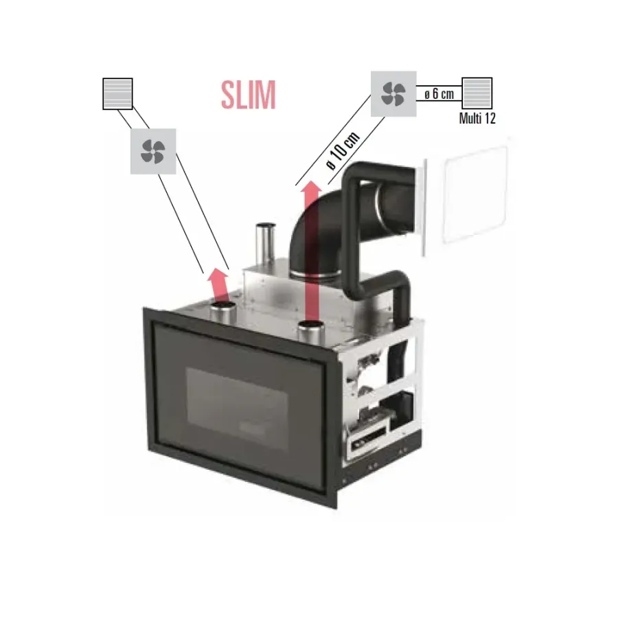 Grazie alla presenza di una uscita fumi superiore, queste stufe possono sfruttare le canne fumarie esistenti ottimizzando così lo spazio abitativo e limitando i costi di installazione.