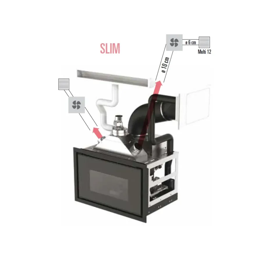 Grazie alla presenza di una uscita fumi superiore, queste stufe possono sfruttare le canne fumarie esistenti ottimizzando così lo spazio abitativo e limitando i costi di installazione.