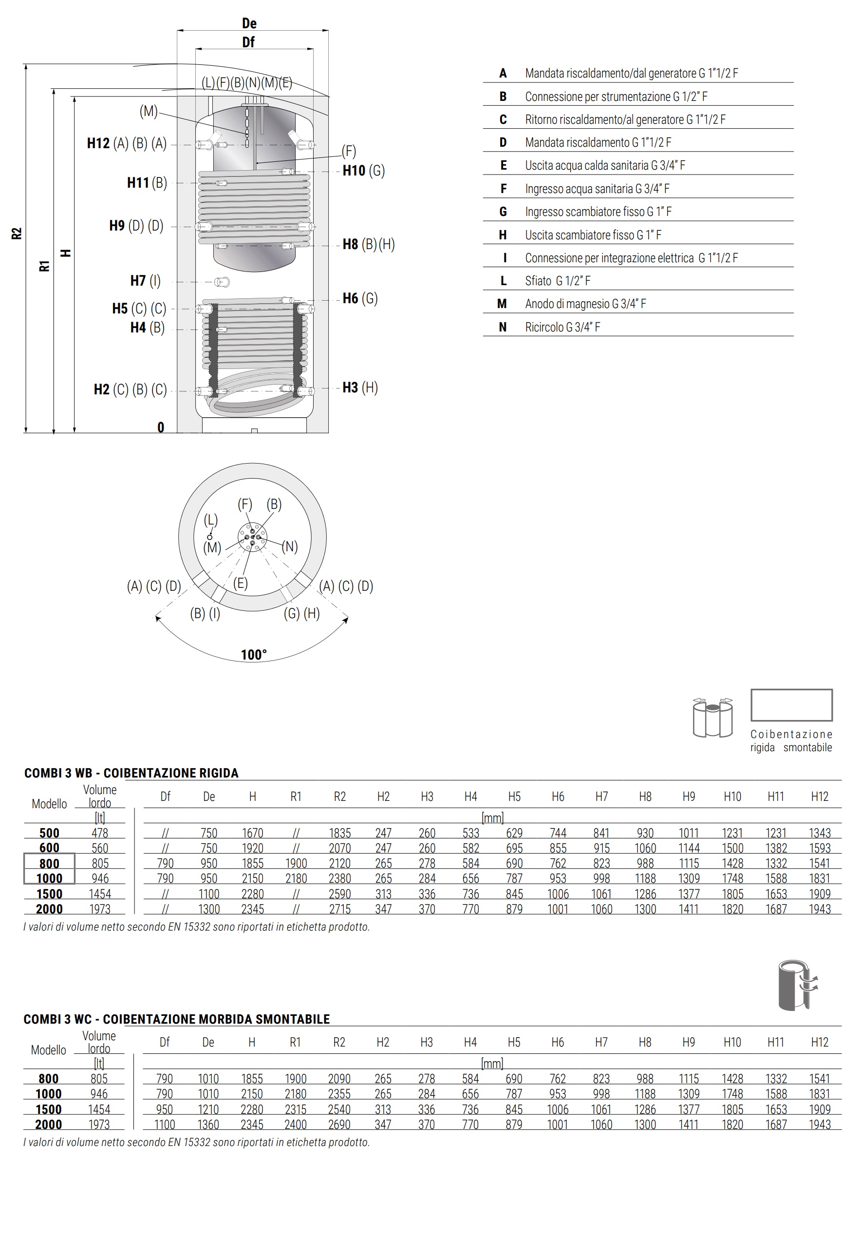 Cordivari Termoaccumulatore Combi 3 WC 2000 Litri Riscaldamento e ACS 2 Scambiatori Classe Energetica C Coibentazione morbida