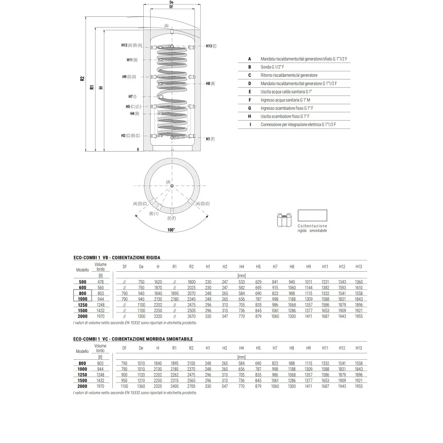 Cordivari Termoaccumulatore ECO Combi 1 VB 1000 Litri Riscaldamento e ACS 1 Scambiatore Classe Energetica C Coibentazione rigida