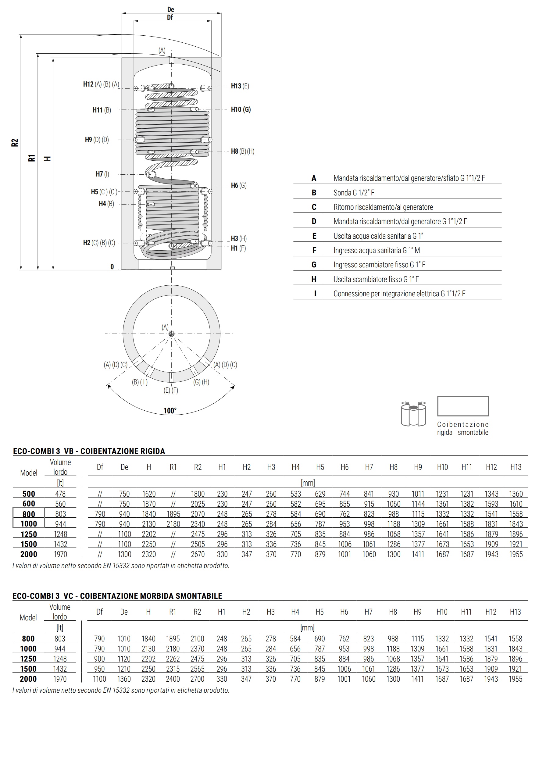 Cordivari Termoaccumulatore ECO Combi 3 VB 2000 Litri Riscaldamento e ACS 3 Scambiatori Classe Energetica B Coibentazione rigida