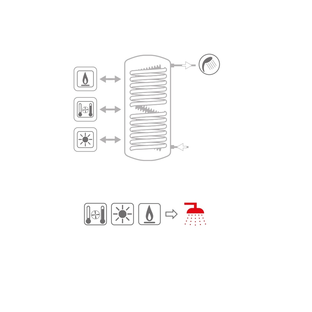 - Accumulo di acqua calda di riscaldamento e produzione rapida di acqua calda sanitaria (ACS).