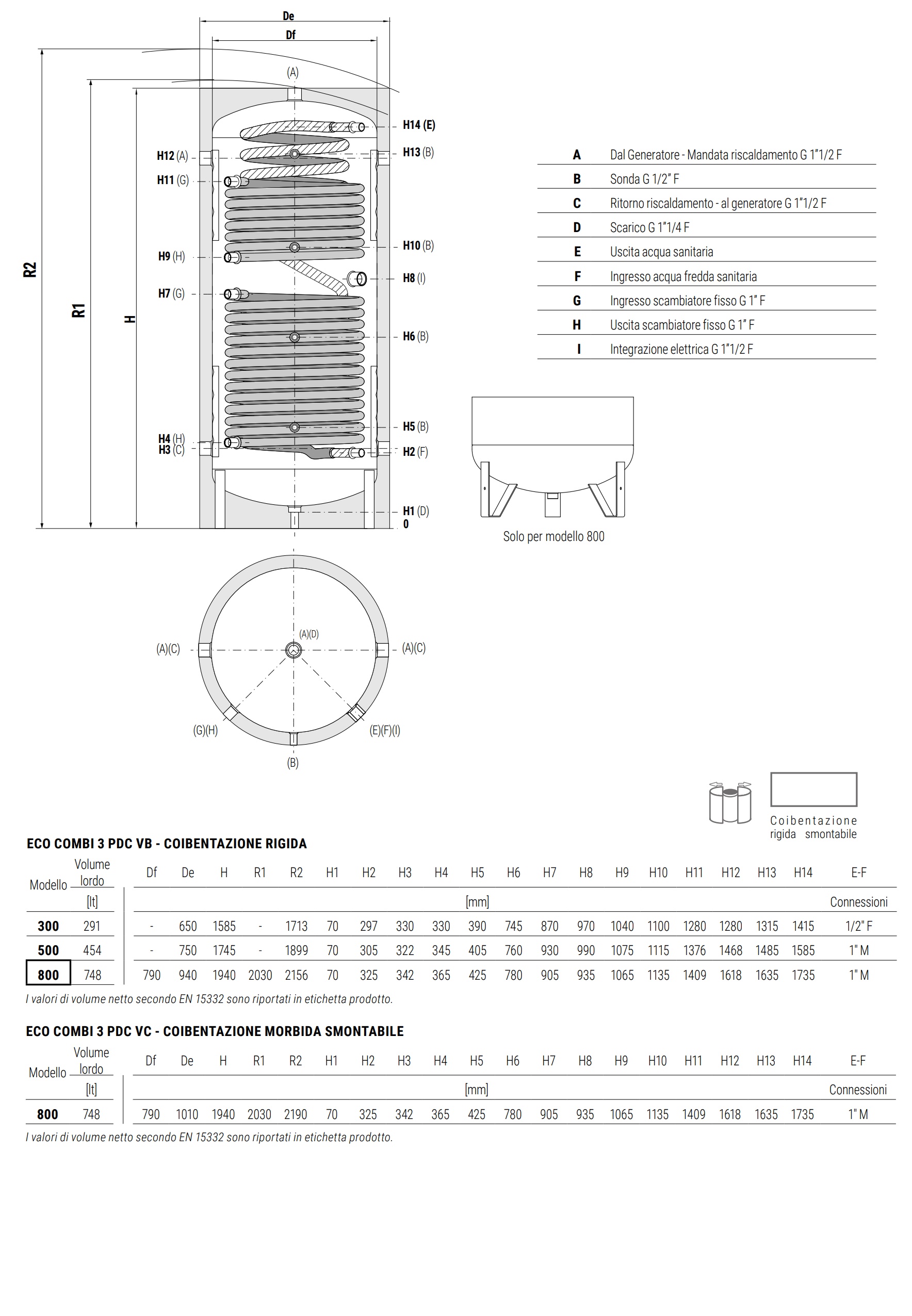 Progettato per impianti alimentati da sorgente termica a pompa di calore, con la possibilità di integrare ulteriori due generatori termici (ad esempio solare e caldaia). ECO COMBI 3 PDC, alle temperature tipiche delle pompe di calore, garantisce ottime produzioni di ACS grazie allo scambiatore sanitario corrugato in acciaio inox 316L specificamente progettato e dimensionato.